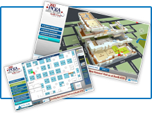 3D models of facility can be customized for your event from out catalog of venues for Print, Online, Web, Apps and on-site. Interactive maps with walking paths are also available for all platforms.